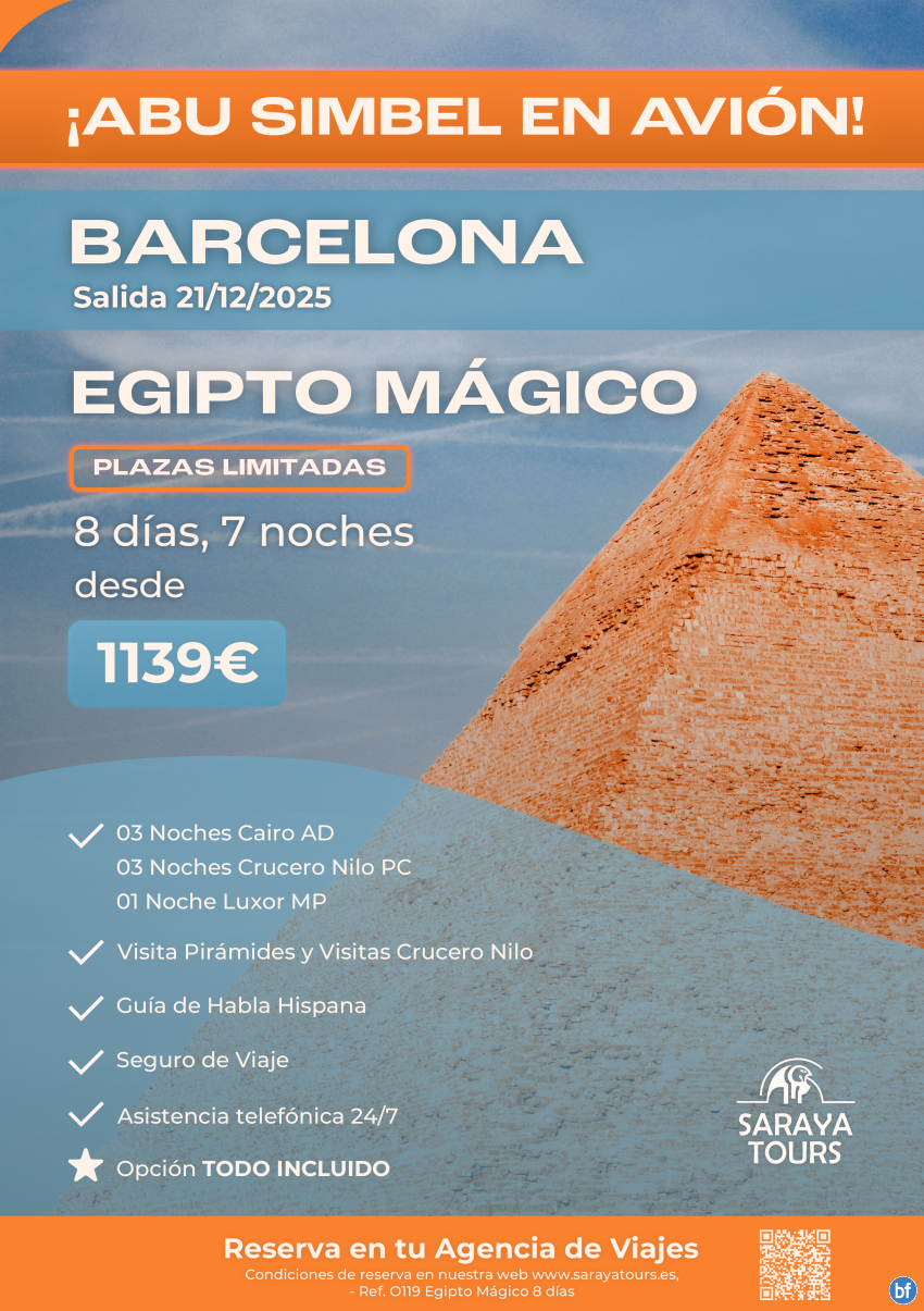 Especial Egipto Mágico con Abu Simbel en avión incluido. Salida 21/12/25 desde BARCELONA