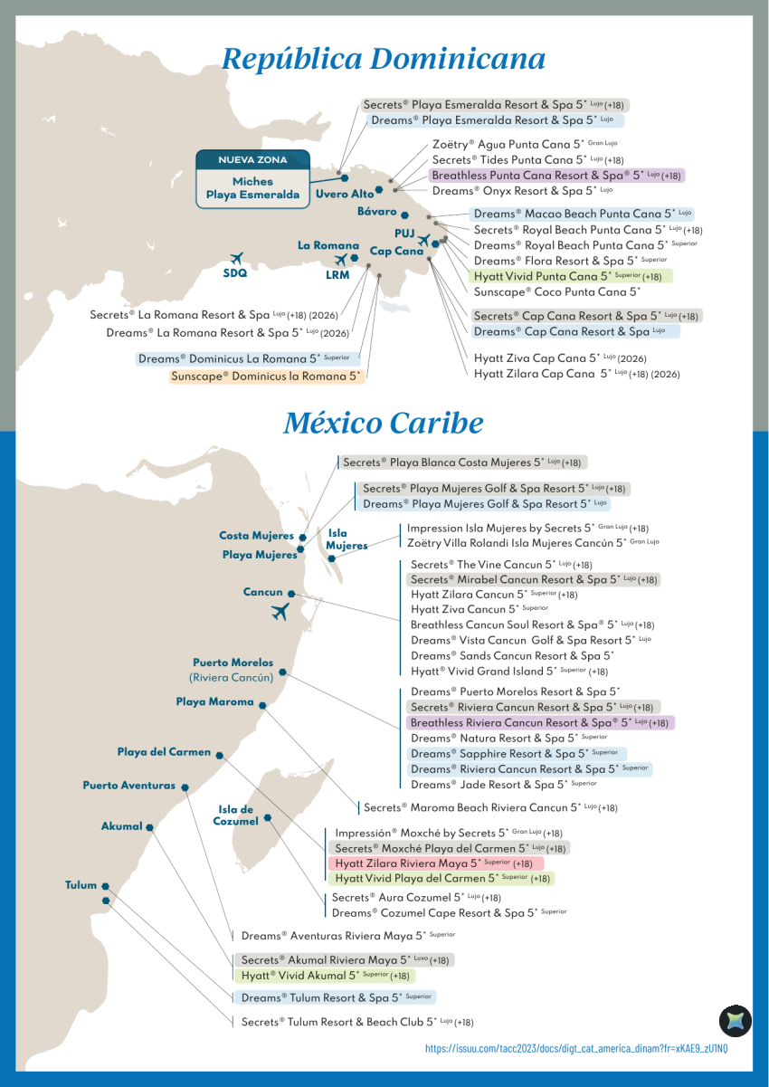 ¿Dónde están ubicados los hoteles Hyatt Inclusive Collection del Caribe?